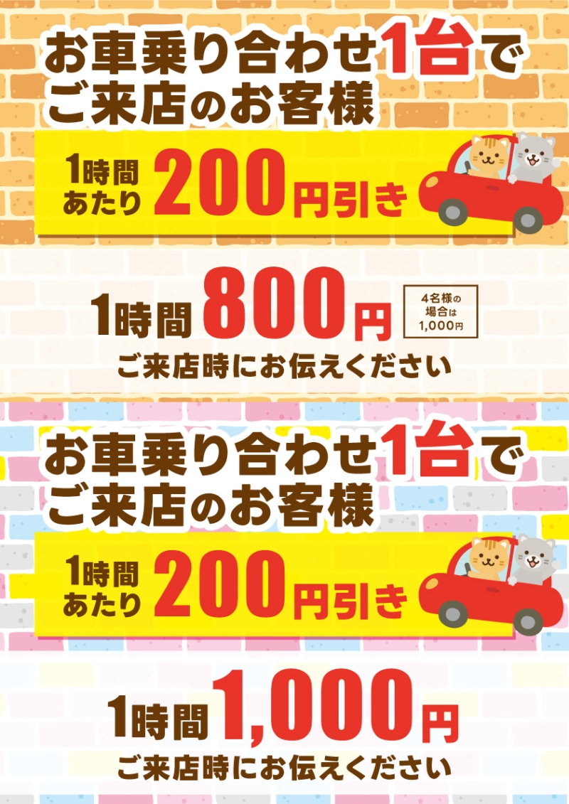 | 料金 (セット) | ■一般 1000円/1卓1時間 ■自動配牌卓 1,200円/1卓1時間 |