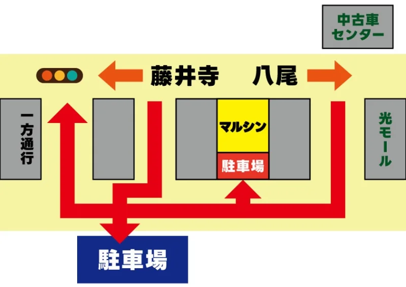 「駐車場完備」店の前と裏と隣接に駐車場ございます