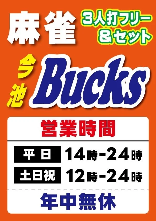 | 料金 (セット) | [・平日夕方(18:00~23:00)は4800円で打ち放題! ・平日は14時~23時までなんとお一人様2000円で打ち放題!(四名様の場合) ※上記以外のお時間は1時間1卓1800円です ・土日祝もお得なパック料金アリ! 5時間パック 1卓7200円 10時パック 1卓11000円 ※上記以外のお時間は1時間1卓1800円です ※別途ドリンク代を頂戴致します。] |