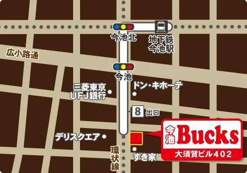 | お店までの道順 | 今池駅8番出口から徒歩1分です!JR千種駅からも徒歩8分! |