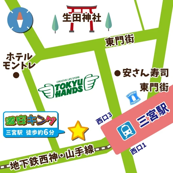| お店までの道順 | 元東急ハンズの西側ビルを1つ挟んで1Fにセブンイレブンのあるビルの6Fです! |