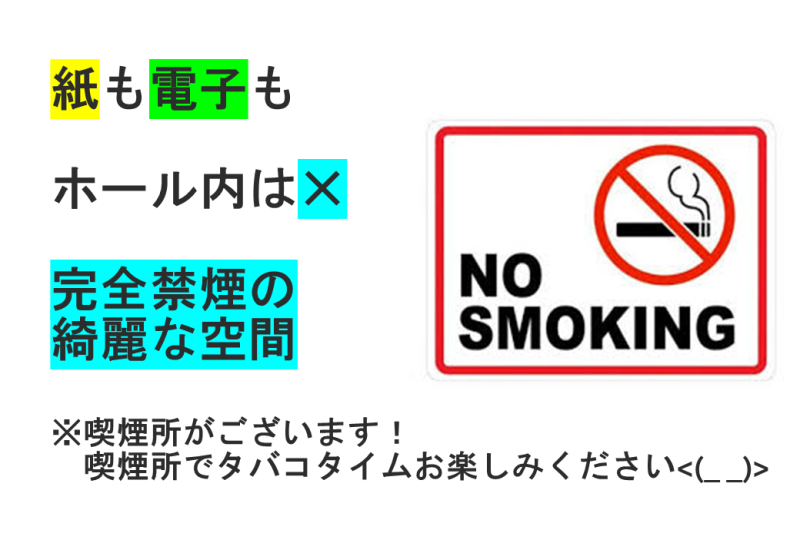 禁煙の為、安心して利用することが出来ました。喫煙スペースも用意されていました。