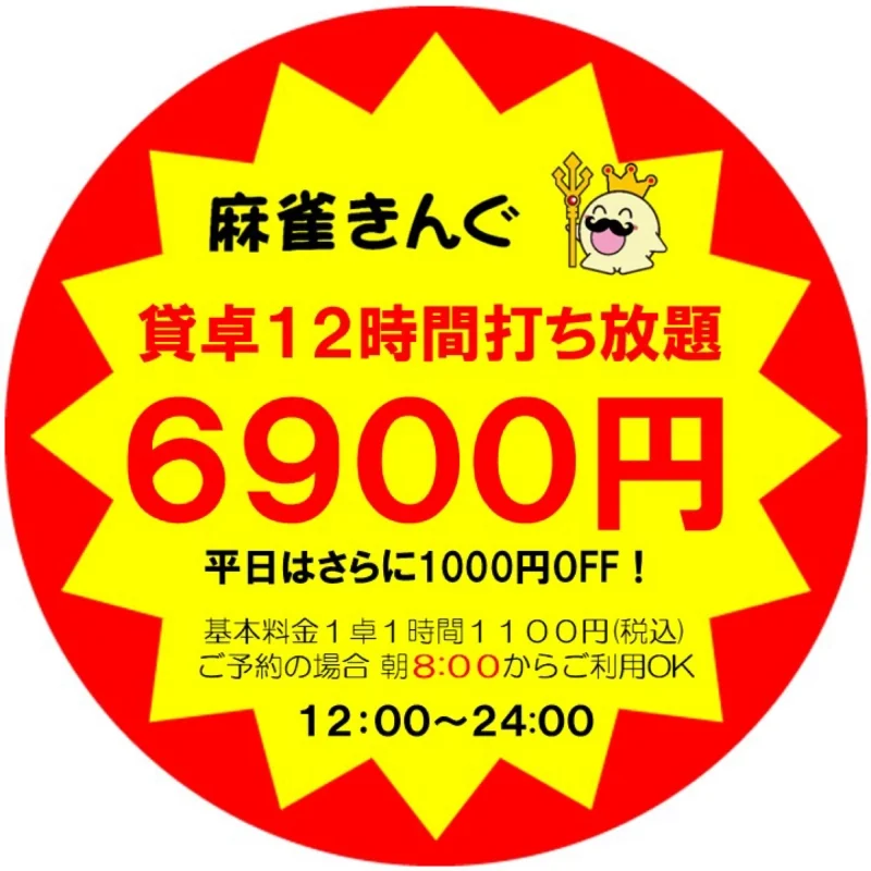 貸卓12時間打ち放題1卓6900円!