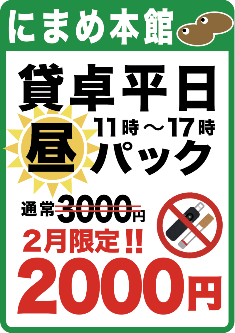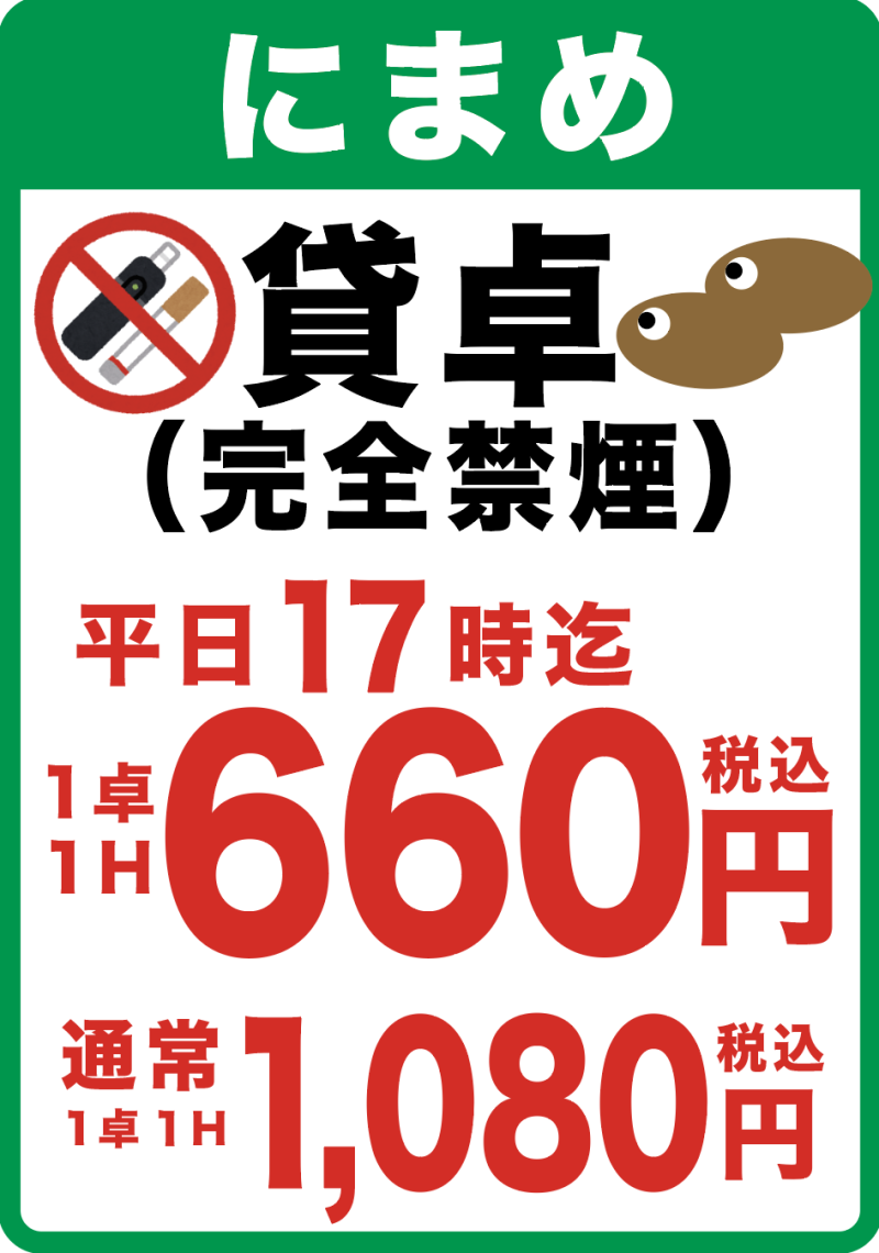 ※月間アクセス数での順位★にまめ本館 ★にまめアネックス 両店とも 【貸卓昼割】やってます!