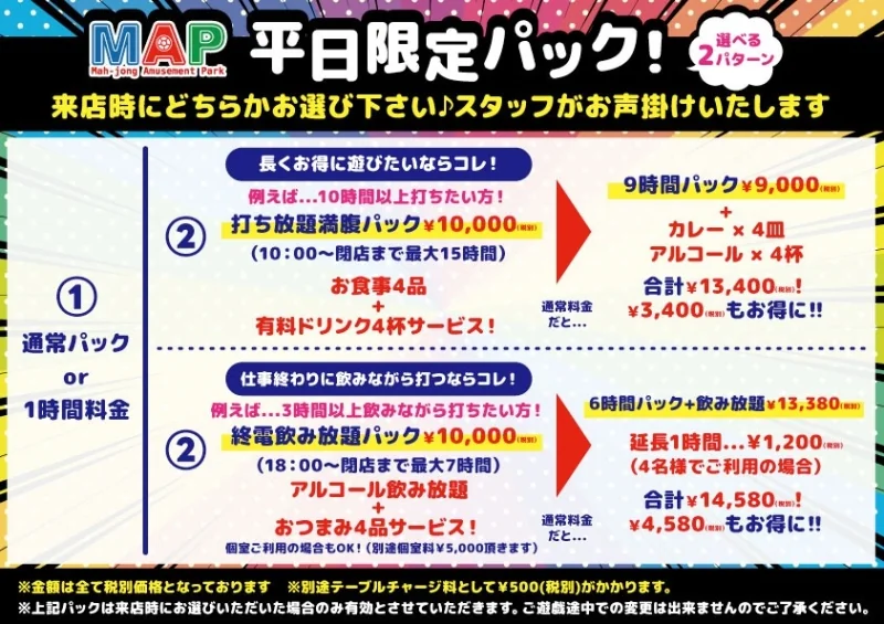 ☆平日限定パックがリニューアルしました!!