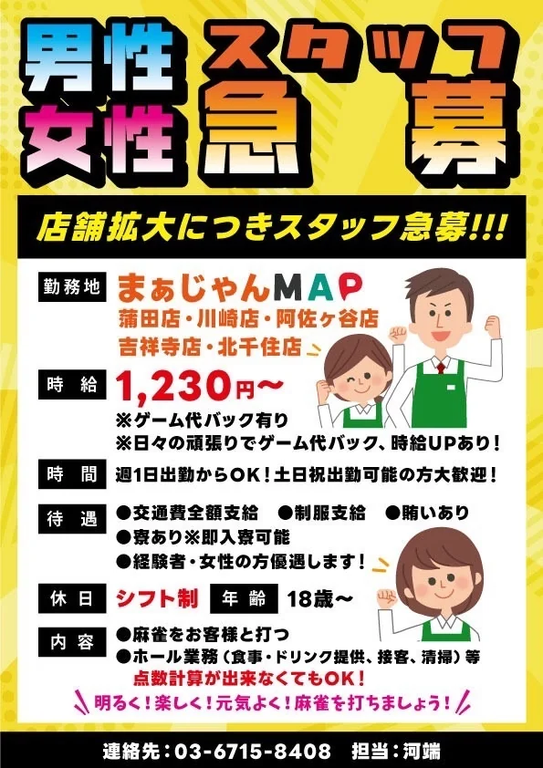 新規男性スタッフ&女性スタッフ募集~