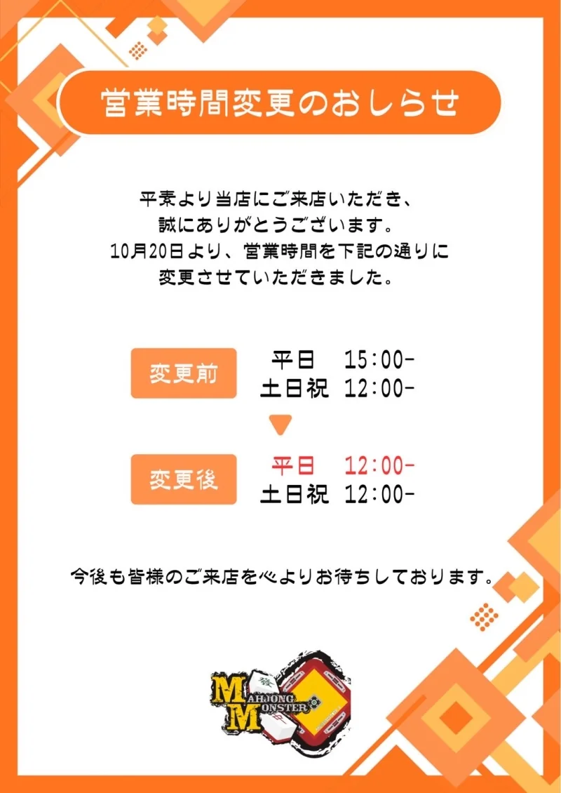 麻雀モンスターの営業情報