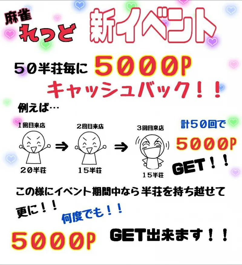 リニューアルイベント‼️累計50半荘ごとに5000pキャッシュバック‼️