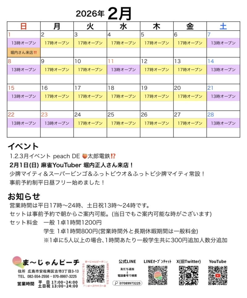2026年2月1日(日) 麻雀YouTuber 堀内正人さん来店!