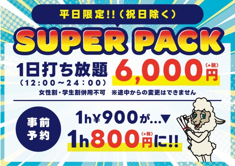 | 料金 (フリー) | 1ゲーム 300円 ※女性のお客様は、1ゲーム 200円!! |
