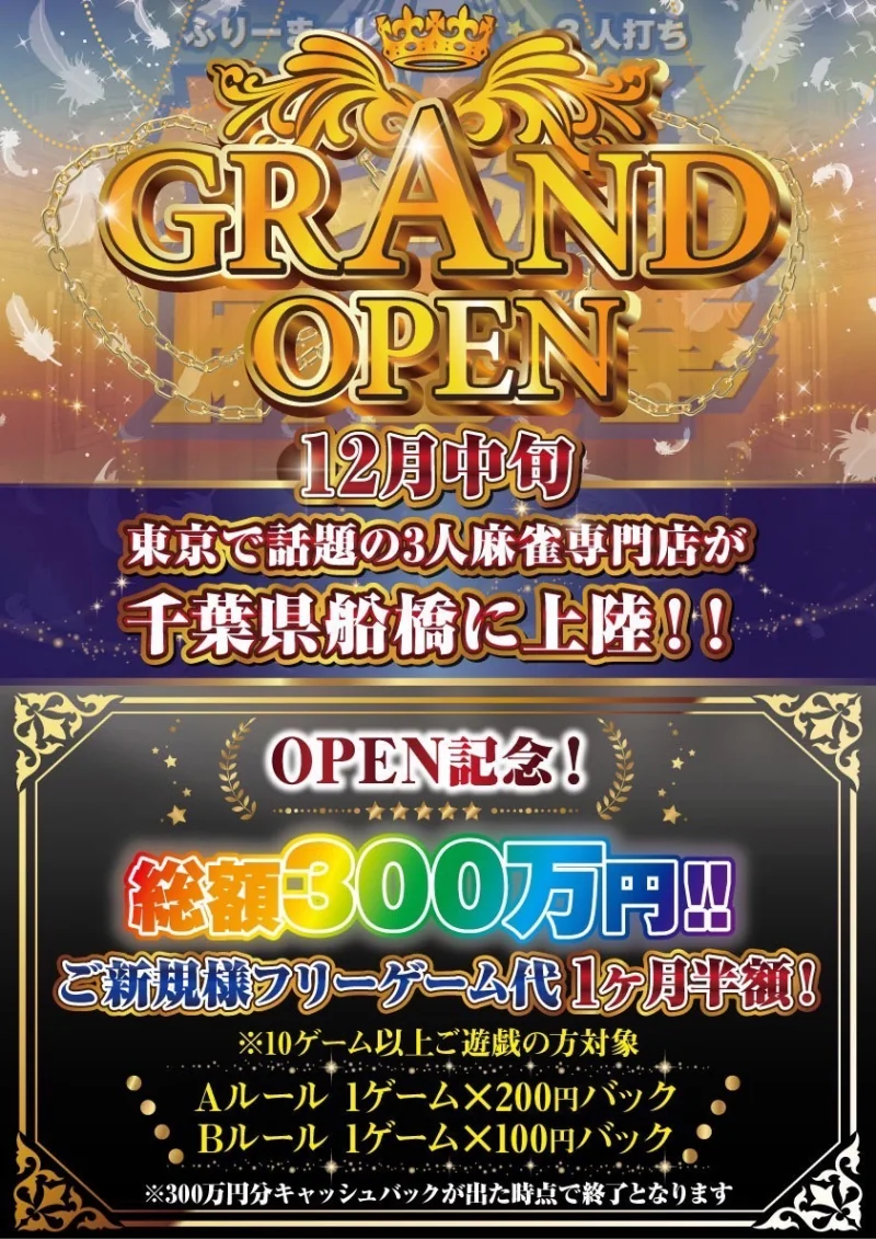 2021年12月23日!船橋エリア初3人麻雀専門店がグランドオープン♪