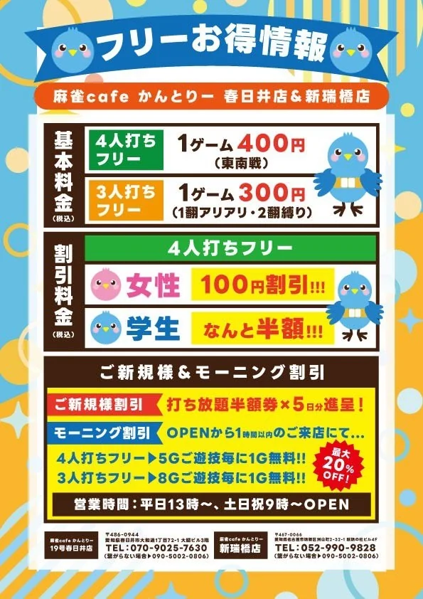 麻雀cafeかんとりー 名古屋新瑞橋店のイベント