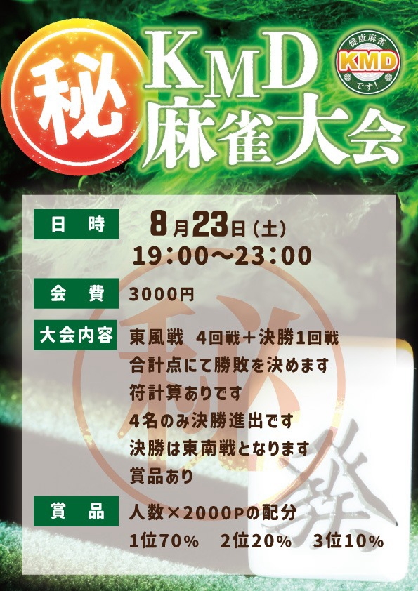 8月23日 ㊙麻雀大会 開催致します! 飛び入り参加もOKですよ!