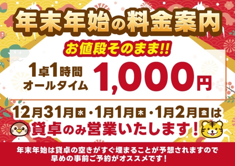 年末年始の貸卓料金に関して