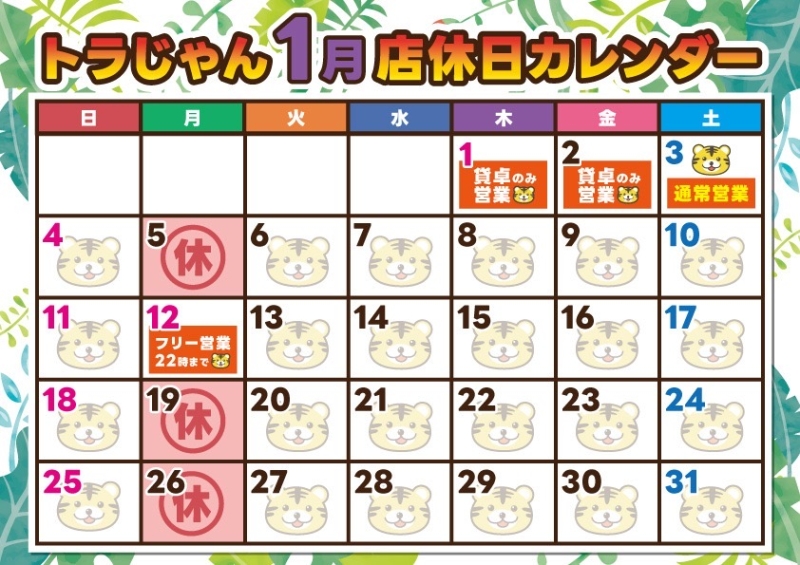 1月カレンダー