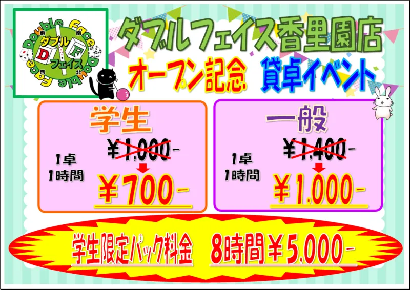 ダブルフェイス香里園店オープン記念貸卓イベント