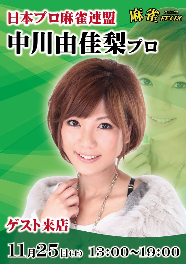 日本プロ麻雀連盟中川由佳梨プロゲスト来店決定!!