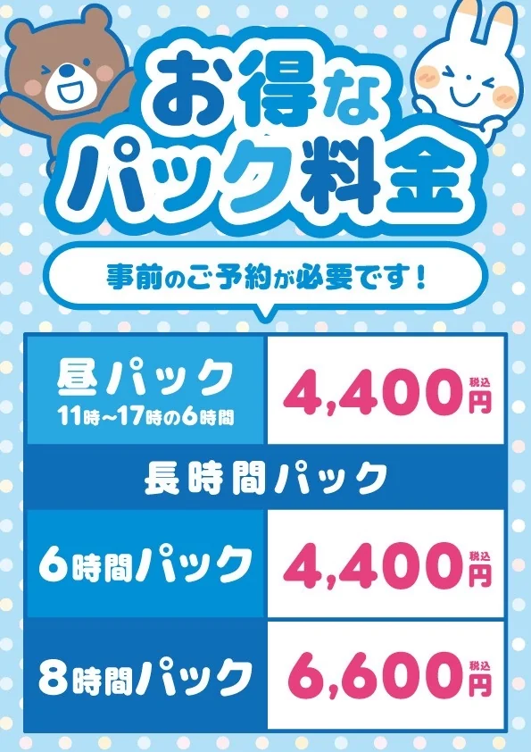 6時間パック4,400円税込 8時間パック6,600円税込 10時間パック8,800円税込
