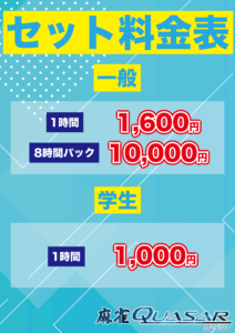 | 料金 (セット) | 一般:1,800円/h 学生:1,100円/h 8時間パック:11,000円 |