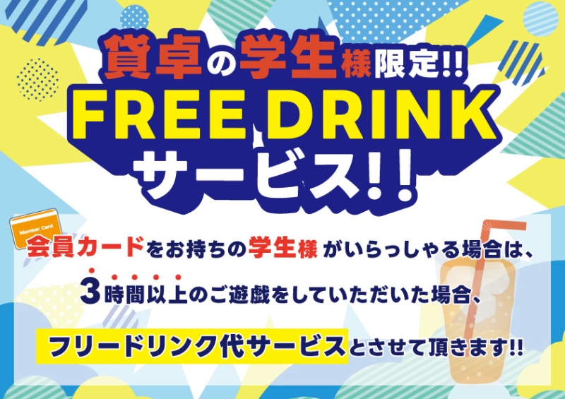 | 基本サービス | フリードリンク, フリードリンク(貸卓), 学生割引, 駐車場あり, 駐車場補助, 個室あり, 食事可能, 持ち込みOK, 出前メニュー, 自動配牌卓, 女性用トイレ, Wi-fi完備, ポイントカード, イベント・大会利用可 |