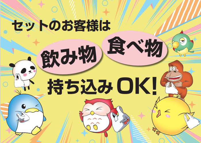 | 料金 (セット) | 一般・土日祝(1時間1卓) 1600円 一般(1時間1卓) 1200円 学生(1時間1卓) 800円 ※学生証をお持ちの方が2名様以上必要です。 超学割(1時間1卓) 500円 ※皆様が25歳未満かつ学生証の提示が必要です。 全て税込価格で、チャージ料を1卓600円頂きます。 ※GW、夏季休暇、年末年始は一部料金変更となる場合がございます。 詳細はお電話にてお問い合わせください。 |