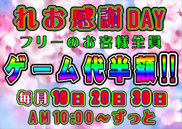 女性のお客様はフリーゲーム代がなんと半額(*´ω`*)