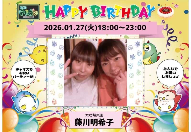 ★1/27(火)18~23時 誕生日イベント★