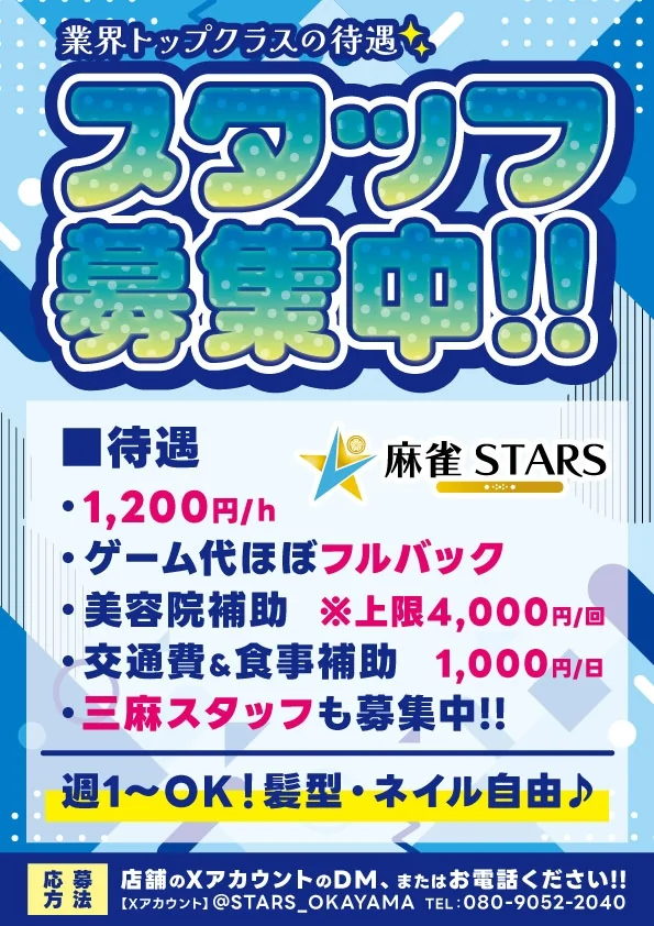 三人打/四人打ともにイベント開催中!是非STARS岡山店へご来店ください!