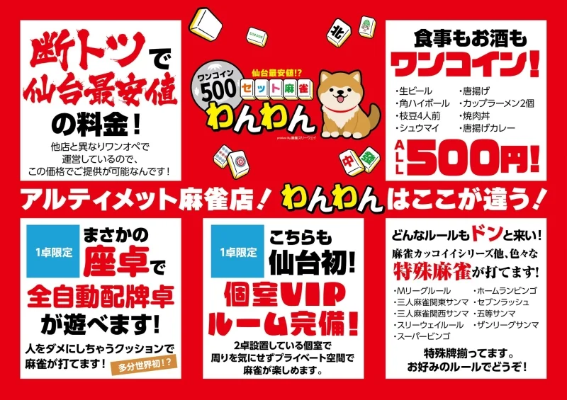 500円ワンコインセット麻雀わんわんの基本情報
