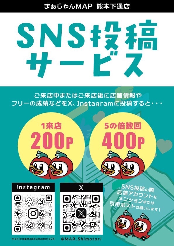 当店のSNSをメンションや引用リポストして投稿すると遊ポイントプレゼント!!