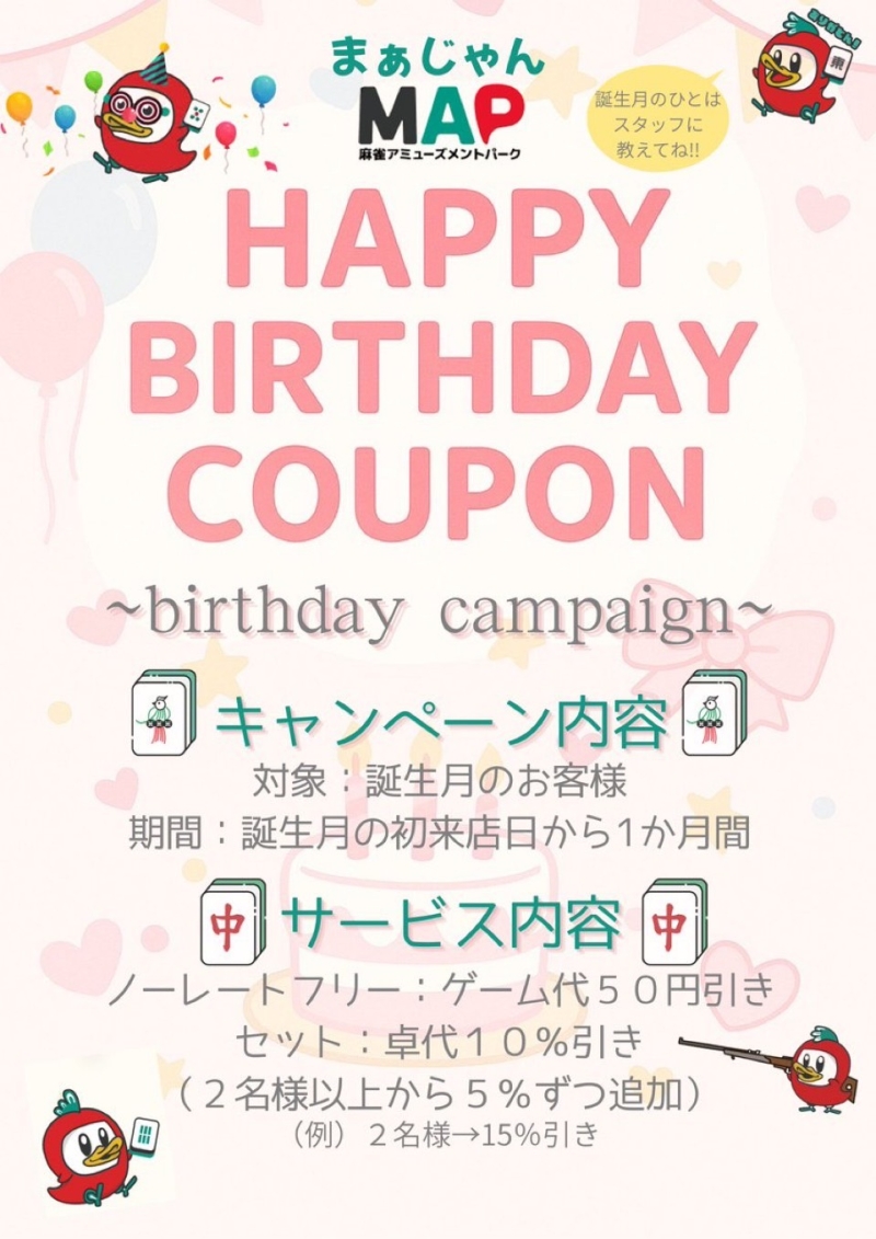 ☆会員登録すると遊ポイントがたまります!!遊ポイントは卓料金以外でご利用可能です。