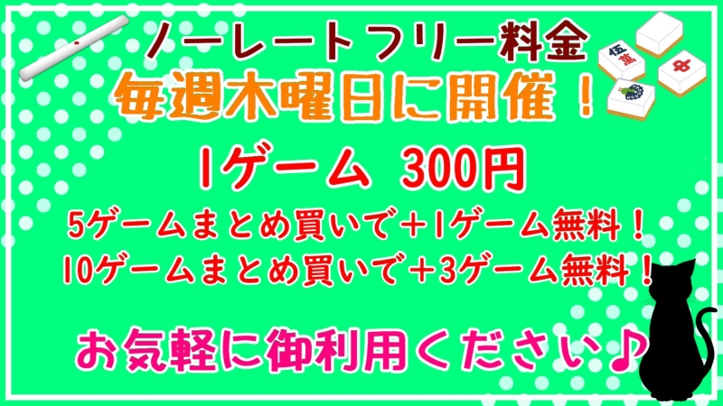 店名 | 麻雀くろねこ(毎週木曜日はノーレートフリーの日) |