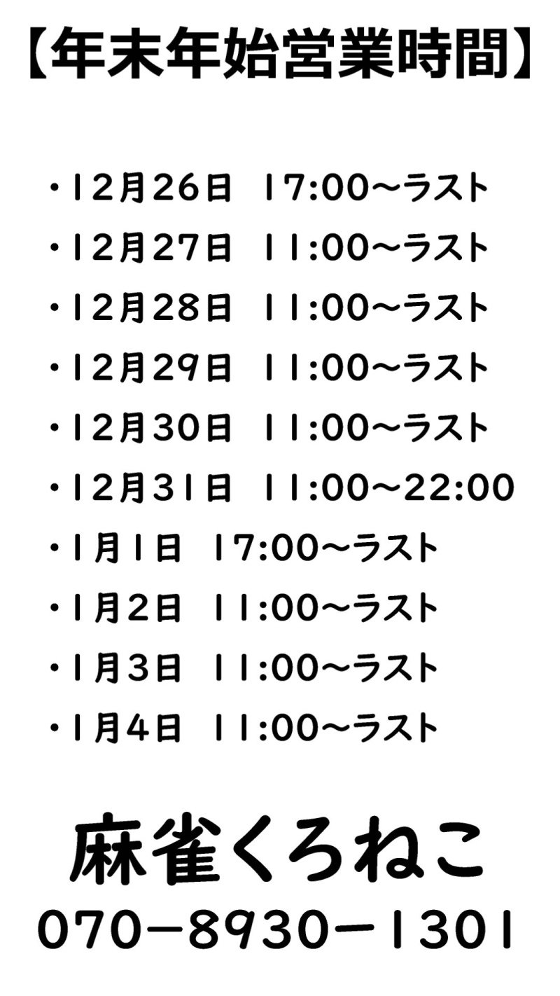 年末年始営業は混雑が予想されますので、前もっての御予約は、お昼12時までの受付とさせて頂きます。(1日は18時まで)