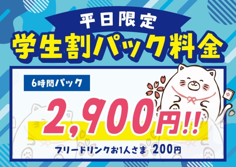| 料金 (セット) | \\⭐⭐ 平日セット一人275円/時 ⭐⭐// 一般&シルバー&女性パック料金 〔平日〕6hパック6,600円 10hパック10,800円 〔土日祝〕6hパック7,500円 10hパック11,800円 ご要望の多かったセット料金! ⭐⭐学割り⭐⭐スタートします!!! \\6h/2,900円// 【平日限定】 AM9:00~ラストまで 【営業時間】 ・平日 9:00~ラスト (フリー15時~) ・土日祝 9:00~ラスト (フリー11時~) お気軽にお問い合わせください! お店:022-796-8688 |