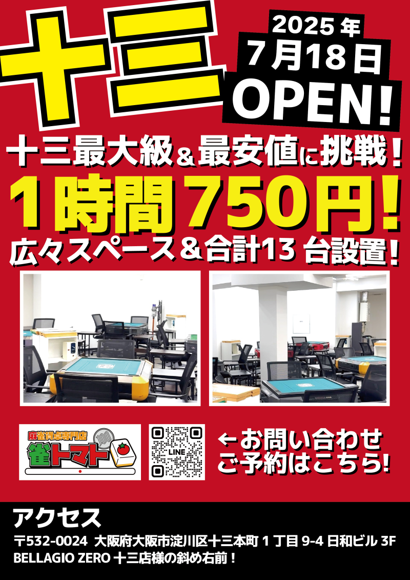麻雀貸卓専門店 雀トマト 十三店です♪