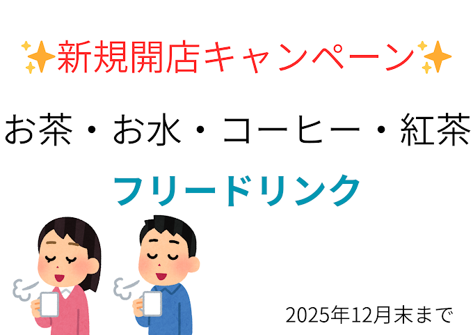 | 基本サービス | フリードリンク(貸卓), 禁煙(店内), 食事可能, 持ち込みOK, Wi-fi完備 |